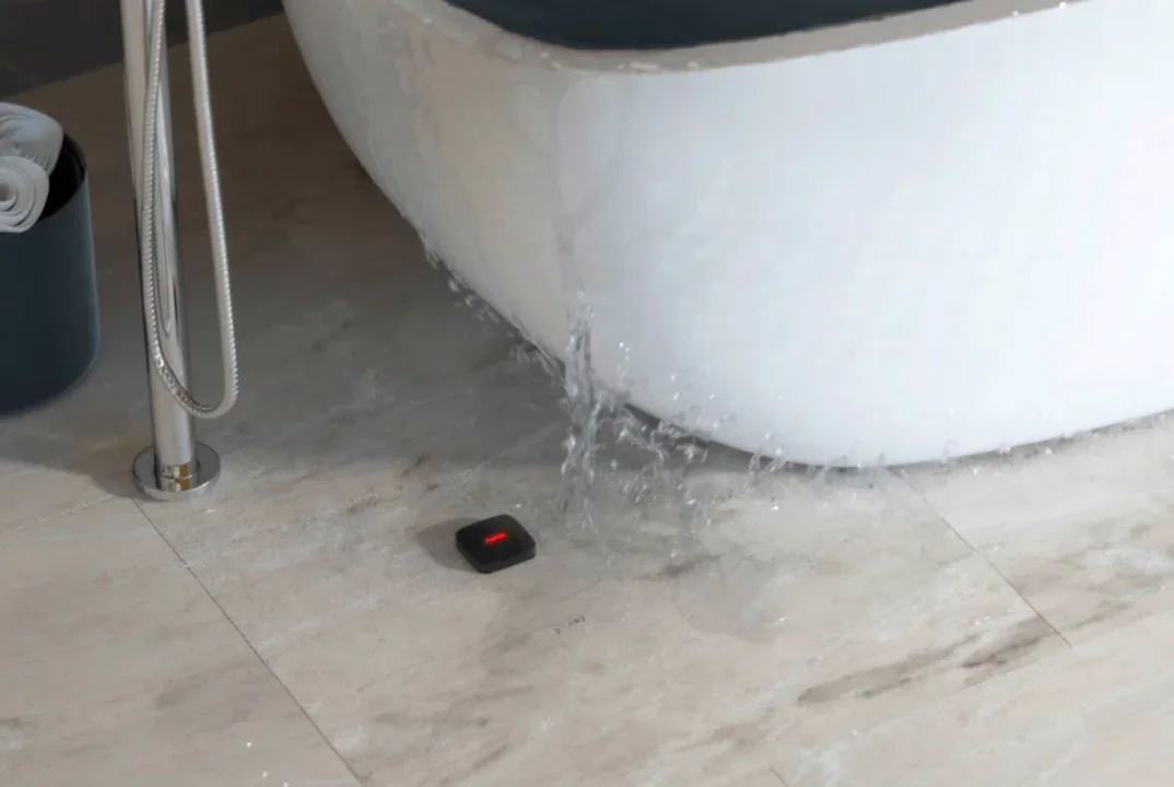 Der LeaksProtect Sesnor ist nur 14mm hoch und kann auch an schwer zugänglichen Stellen platziert werden. Das Gerät erfordert keine Montage, kommt jahrelang ohne Wartung aus und arbeitet rund um die Uhr. Sollte eine Waschmaschine undicht sein oder ein Rohr platzen, reagiert der Melder sofort indem er einen Alarm auslöst. Unabhängig davon, von welcher Seite das Wasser auf den Melder gelangt, wird sofort ein Alarm ausgelöst. Der LeaksProtect hat Kontaktpaare an allen vier Seiten des Gehäuses. Wenn mindestens eines von diesen mit Wasser bedeckt wird, meldet der Sensor ein Leck. Sobald die Kontakte austrocknen, meldet das Gerät, dass das Leck nicht mehr vorhanden ist. Batterielebensdauer bis zu 5 Jahre Schutzart IP65