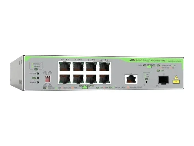 Allied Telesis CentreCOM AT-GS910/10XST - Switch - unmanaged - 8 x 10/100/1000 + 1 x 100/1000/2,5 G/5 G/10 G (Uplink) + 1 x 1 Gigabit/10 Gigabit SFP+ (Uplink) - an Rack montierbar