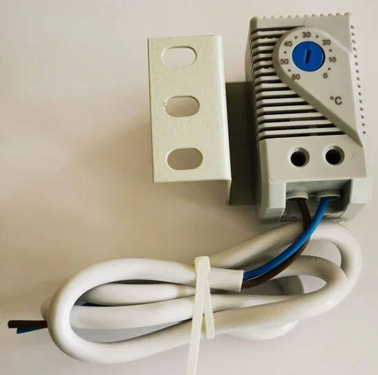 eine Ein-/Ausschalthysrerese von +(-) 7Grad, incl. Blech zum Anschrauben an eine 19" Ebene