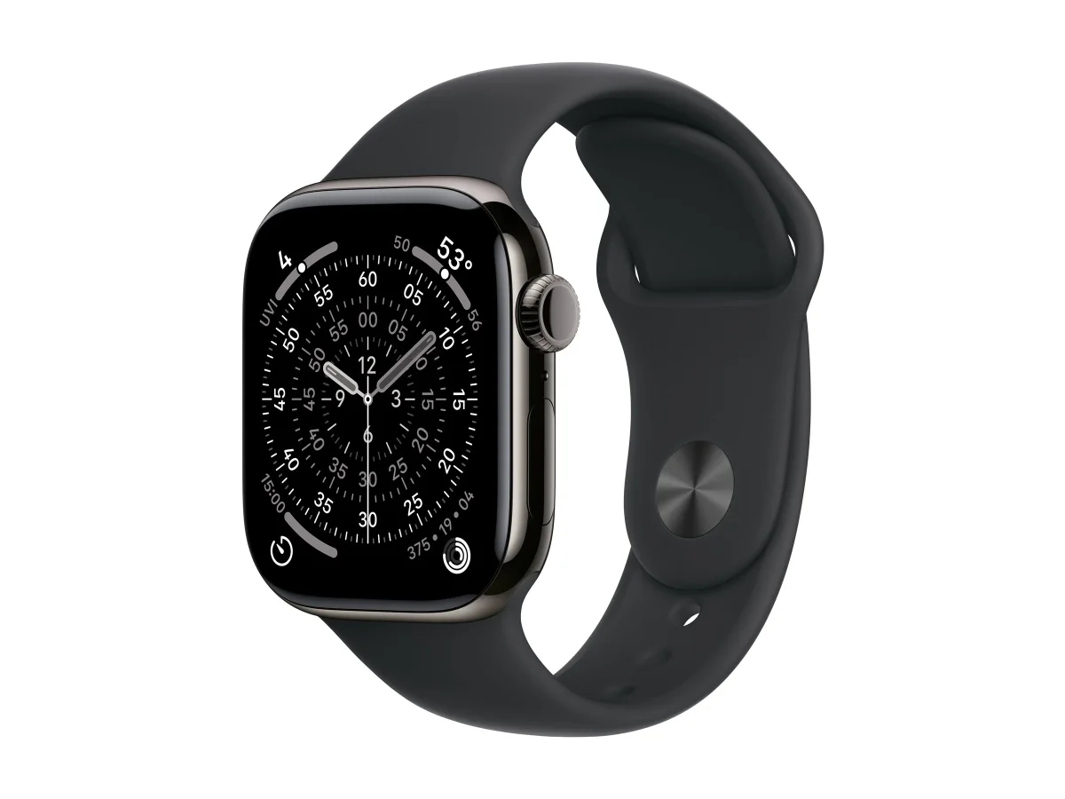 Apple Watch Series 11 (GPS + Cellular) - 42 mm - Schiefer-Titan - intelligente Uhr mit Sportband - Flouroelastomer - schwarz - Bandgröße: S/M - 64 GB - LTE, Wi-Fi 4, UWB, Bluetooth - 5G - 34.6 g