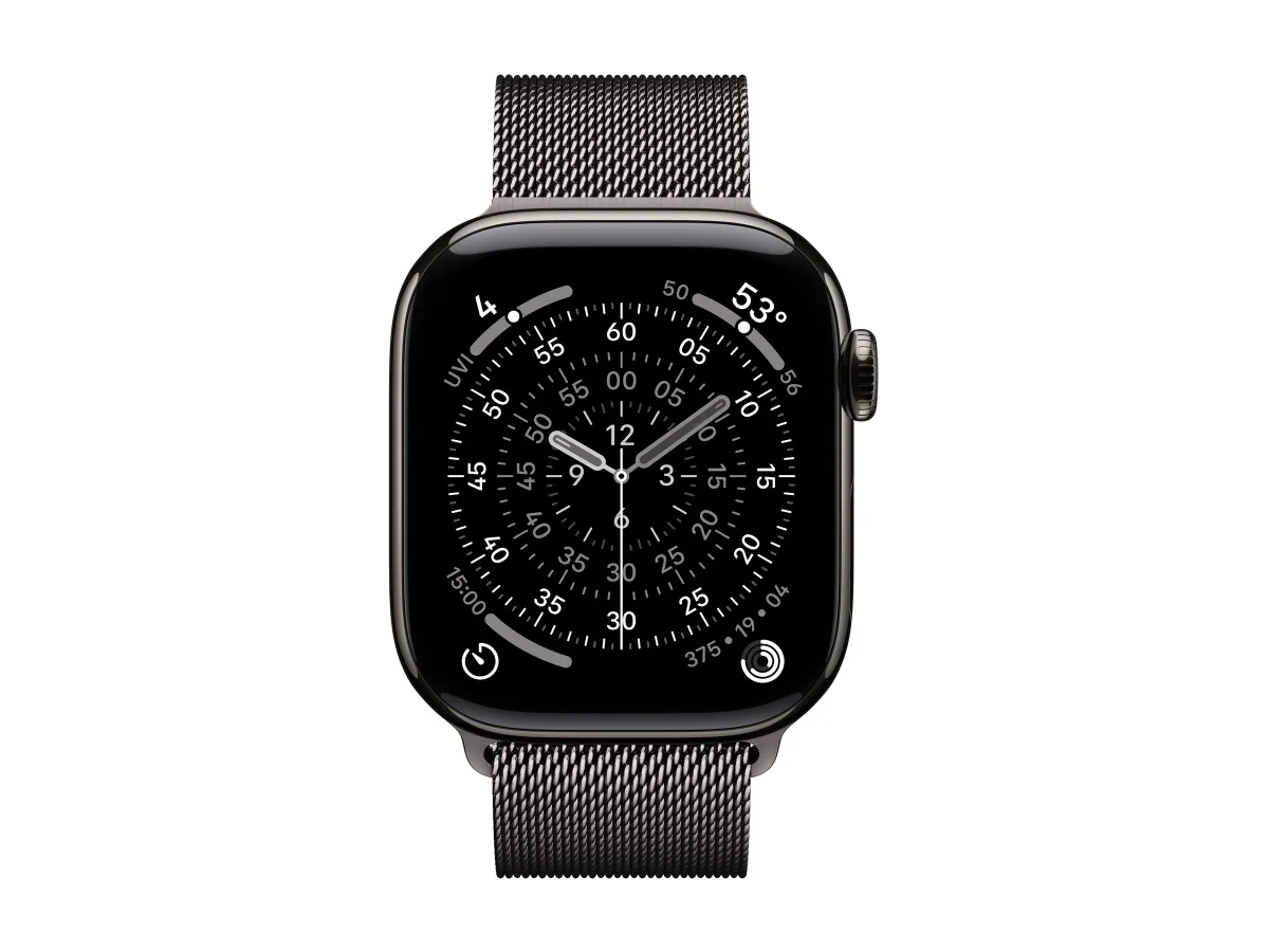 Apple Watch Series 11 (GPS + Cellular) - 42 mm - Schiefer-Titan - intelligente Uhr mit Milanaise Armband - Edelstahl-Mesh - Schiefer - Handgelenkgröße: 130-180 mm - 64 GB - LTE, Wi-Fi 4, UWB, Bluetooth - 5G - 34.6 g
