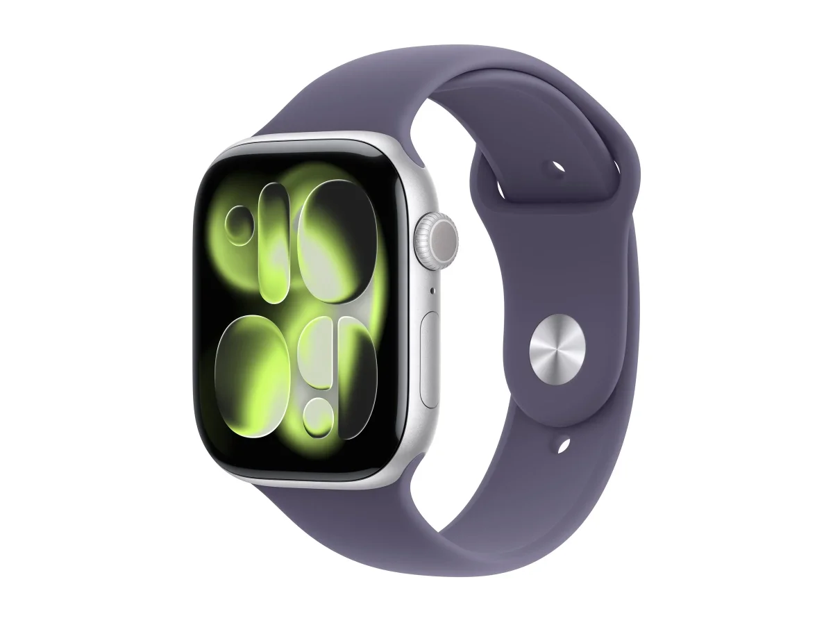 Apple Watch Series 11 (GPS) - 46 mm - Aluminium, Silber - intelligente Uhr mit Sportband - Flouroelastomer - lila Nebel - Bandgröße: M/L - 64 GB - Wi-Fi 4, UWB, Bluetooth - 37.8 g