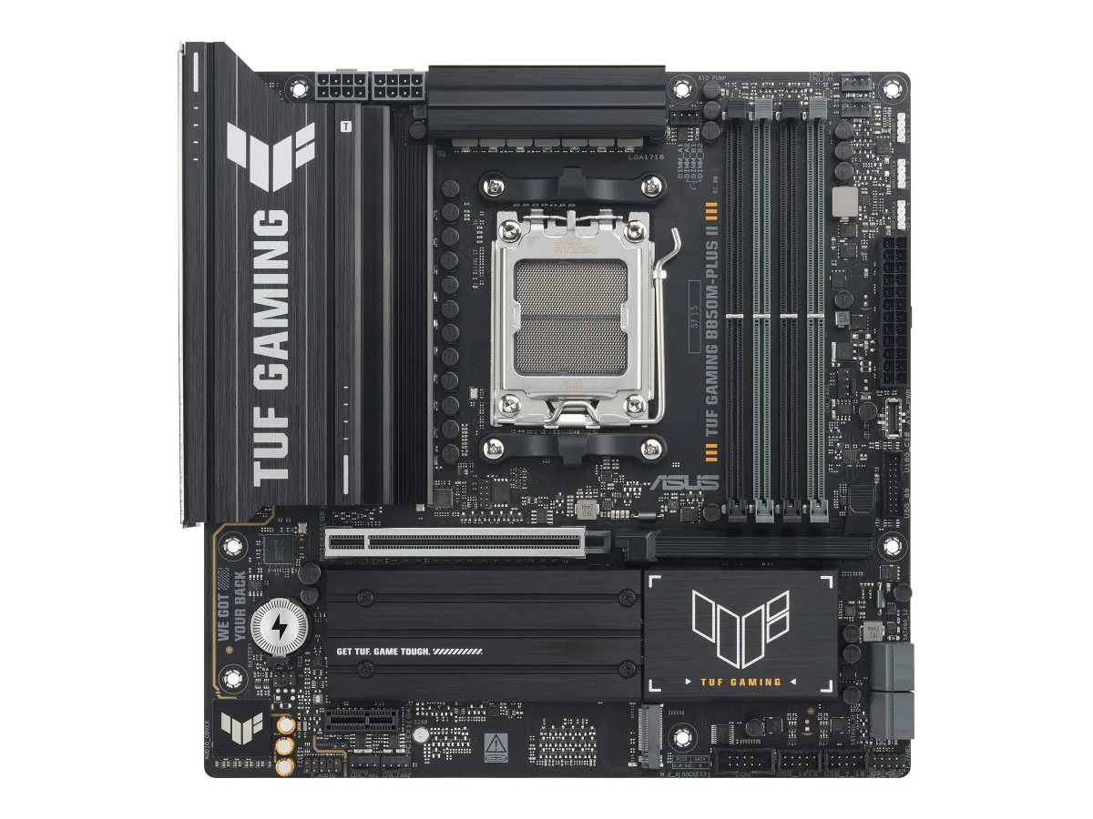 Das ASUS TUF GAMING B850M-PLUS II-Motherboard wurde für Stabilität und Leistung entwickelt und bietet Unterstützung für High-Definition-Audio und erweiterte Konnektivitätsoptionen. Mit einem Micro-ATX-Formfaktor und Kompatibilität mit Ryzen-Prozessoren erfüllt es die Anforderungen von Gamern und Kreativen. Das Board unterstützt DDR5-Speicher und bietet schnelle Datenübertragungsraten von bis zu 8000 MT/s, was reibungsloses Multitasking und einen effizienten Betrieb gewährleistet.