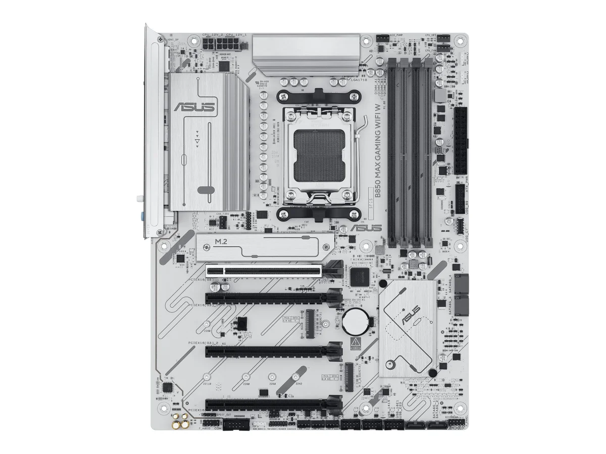 Das ASUS B850 MAX GAMING WIFI W Motherboard wurde für Gamer und Enthusiasten entwickelt, die Zuverlässigkeit und Leistung in ihren Systemen suchen. Mit einem robusten AMD B850-Chipsatz unterstützt dieses Motherboard Prozessoren der Ryzen 7000/8000/9000-Serie und gewährleistet damit leistungsstarke Rechenkapazitäten. Mit einer maximalen RAM-Unterstützung von 4000 MHz und mehreren Speicheroptionen ermöglicht dieses Motherboard effizientes Multitasking und eine schnelle Datenverarbeitung. Zu den Konnektivitätsoptionen gehören 2,5 Gigabit Ethernet und Bluetooth 5.3, die nahtlose Datenübertragungsraten und drahtlose Konnektivität bieten.