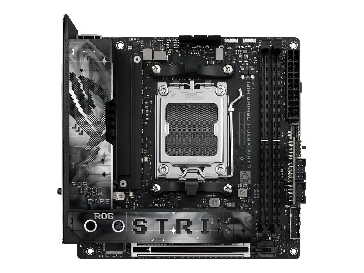 ASUS ROG STRIX X870-I GAMING WIFI - Motherboard - Mini-ITX - Socket AM5 - AMD X870 Chipsatz - USB4, USB 3.2 Gen 2, USB-C 3.2 Gen2, USB 3.2 Gen 1 - Wi-Fi 7, Bluetooth, 2.5 Gigabit LAN - Onboard-Grafik (CPU erforderlich) - HD Audio (8-Kanal)