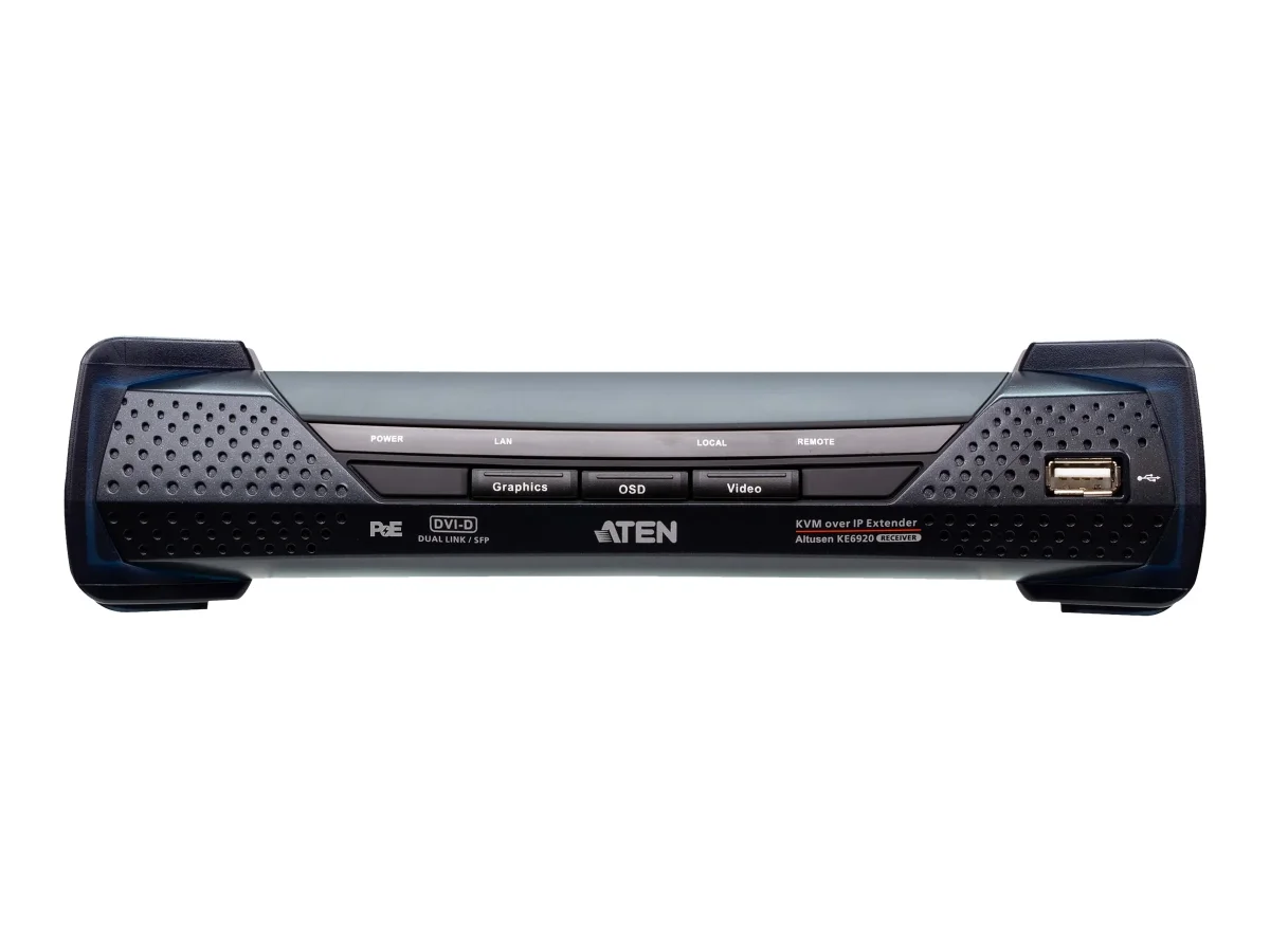 ATEN Altusen KE6922R 2K DVI-D Dual-Link KVM over IP Receiver with Dual SFP & PoE - KVM-/Audio-/USB-/serieller Extender - Empfänger - USB - bis zu 10 km - für P/N: CS1144DP4UN