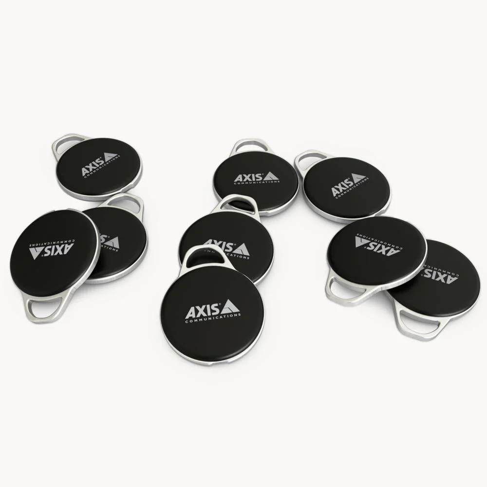 03083-001 Sicherer und robuster physischer Zugriff. MIFARE® DESFire® EV3. Ultraschallgeschweißter Rahmen aus rostfreiem Stahl. IP67- und IK09-zertifiziert. Kleiner und dünner Schlüsselanhänger. Kompatibel mit Kartenlesern und Gegensprechanlagen von Axis.