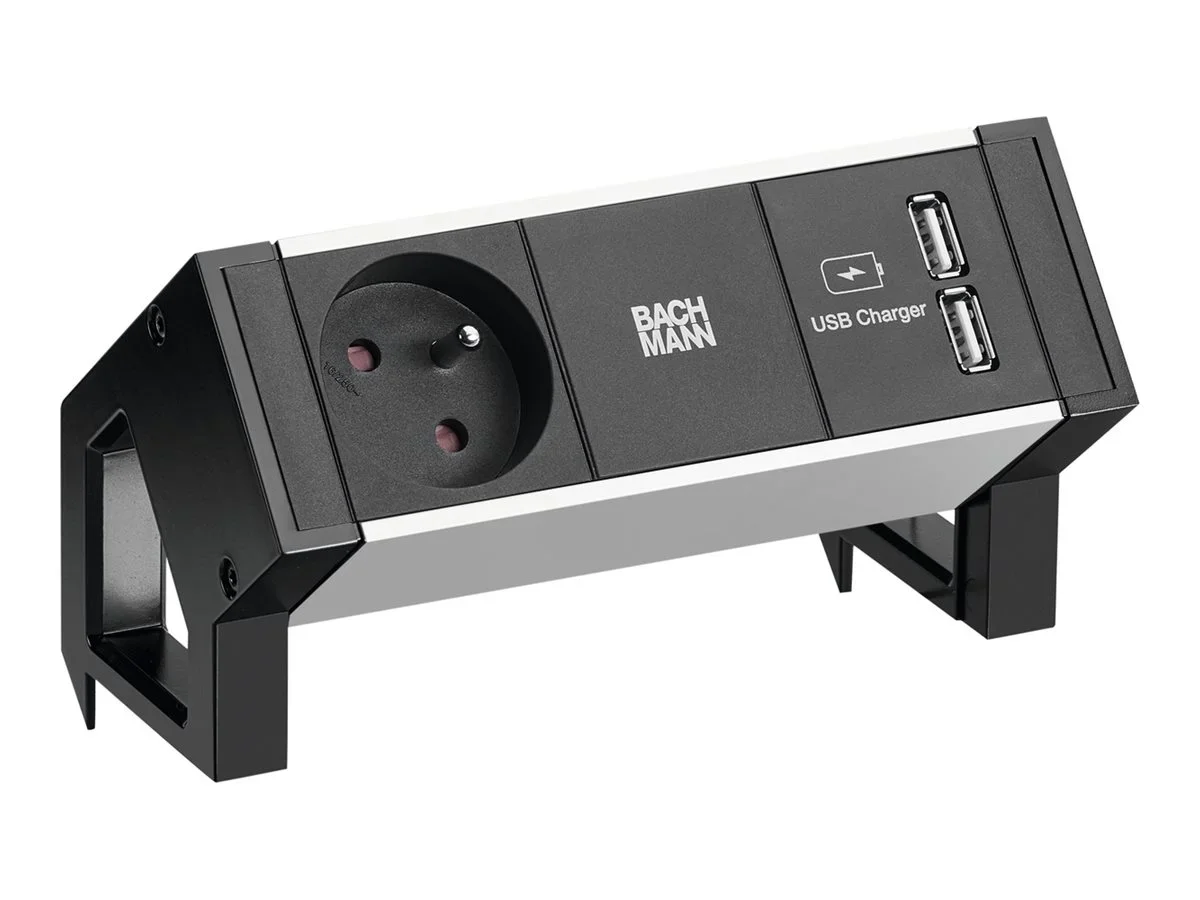 Bachmann DESK 2 ALU - Steckdosenleiste - AC - Eingabe, Eingang GST18 - Ausgangsanschlüsse: 1 (Typ E, 2 x USB) - 20 cm Schnur - Schwarz, Aluminium