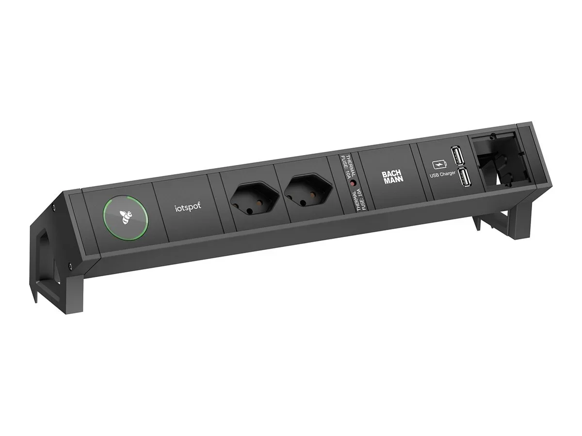 Bachmann DESK 2 - Steckdosenleiste - AC - Eingabe, Eingang GST18 - Ausgangsanschlüsse: 2 (T13, 2 x USB) - 20 cm Schnur - Schweiz - Schwarz, RAL 9005