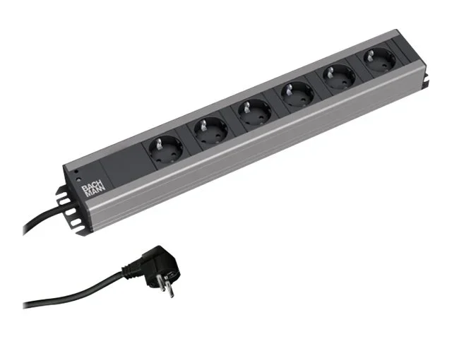 Bachmann - Stromverteilungseinheit (Rack - einbaufähig) - Wechselstrom 230 V - Ausgangsanschlüsse: 6 (power CEE 7/3) - 48.3 cm (19") - 2 m Schnur - Schwarz, RAL 7035