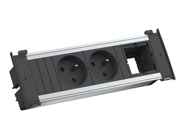 Bachmann KAPSA Small - Steckdosenleiste (Wandmontage / Aufputzmontage) - 3680 Wh - Eingabe, Eingang Typ F - Ausgangsanschlüsse: 2 (French / UTE) - 2 m Schnur - Frankreich - Schwarz, Aluminium
