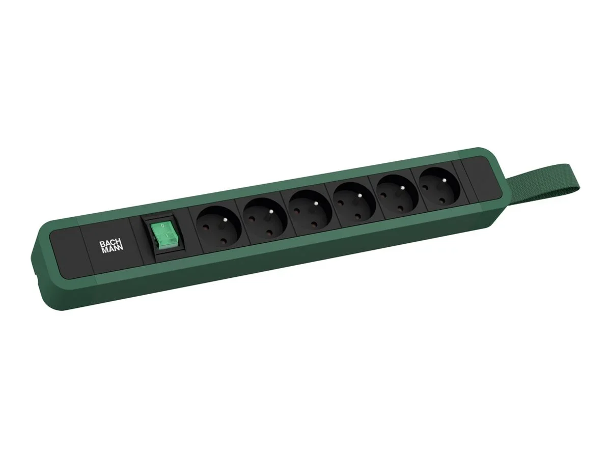Bachmann PRIMO 2 - Steckdosenleiste - with strap, right-angled plug, with earthing contact (Strom UTE) - 2 m Schnur - grün