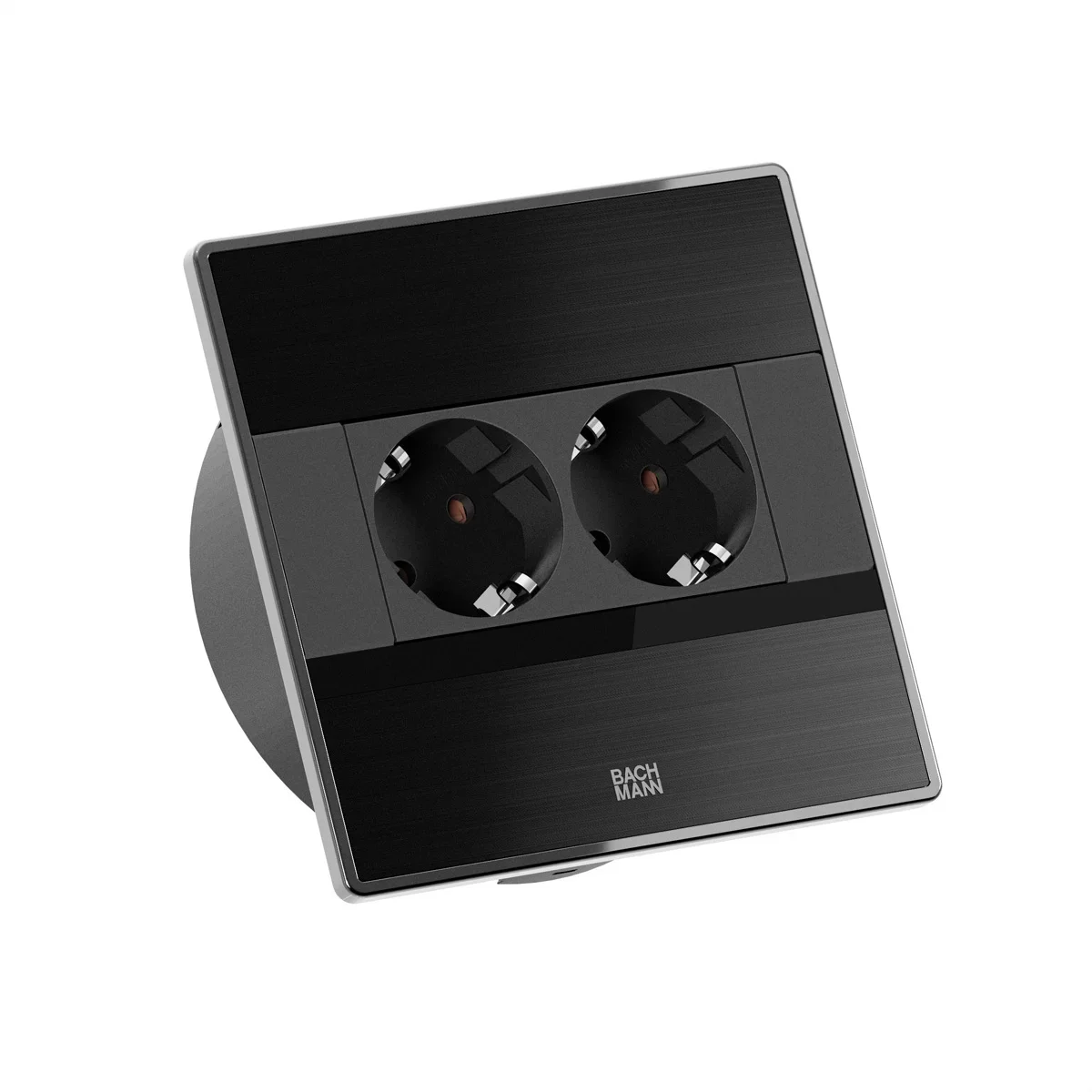 SENSE Einbau-Steckdose, schwarz gebürstet ähnlich RAL 9005, 2xSchutzkontaktsteckdosen schwarz mit erhöhtem Berührungsschutz, Zuleitung 2,0m H05VV-F3G1,5mm² schwarz mit Aderendhülsen und beigelegtem Schutzkontakt-Montagestecker, verpackt im Karton.