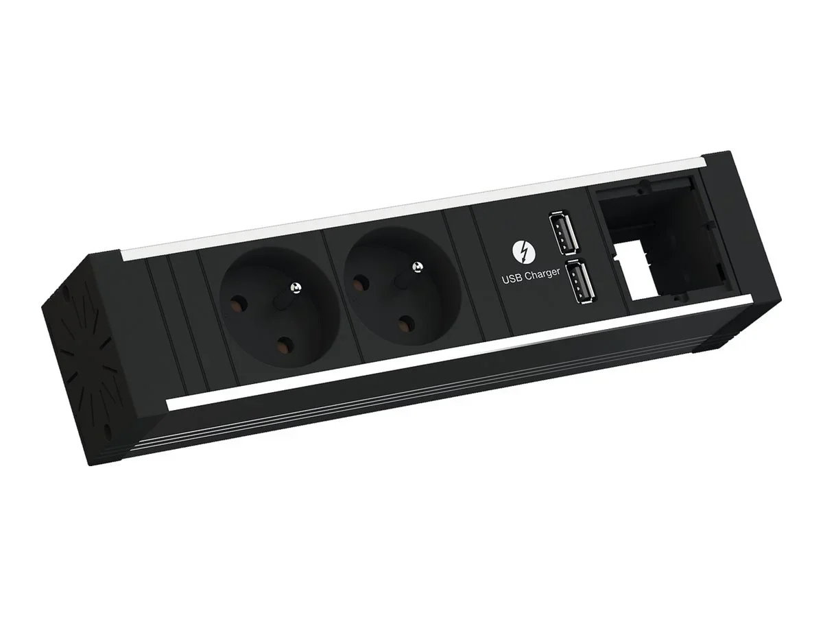 Die Bachmann VENID-Steckdosenleiste bietet eine vielseitige Lösung für moderne Anschlussanforderungen. Sie verfügt über ein Gehäuse aus eloxiertem Aluminium, das für zusätzliche Haltbarkeit sorgt und gleichzeitig ein schlankes Design bietet. Mit einem kompakten 20-cm-Netzkabel ist sie ideal für Räume, in denen Komfort und Ästhetik im Vordergrund stehen. Die Steckdosenleiste umfasst verschiedene Anschlüsse – einen GST18-Eingangsanschluss und mehrere Ausgangsoptionen für verschiedene Geräte, darunter 4-polige USB-Typ-A-Ausgänge und UTE-Steckdosen. Dies macht sie zu einer praktischen Wahl für die gleichzeitige Stromversorgung mehrerer Geräte. Diese Steckdosenleiste wurde mit Blick auf Funktionalität entwickelt und verfügt über um 35° abgewinkelte Steckdosen, die auch in engen Räumen einen einfachen Zugang ermöglichen. Die Integration eines kundenspezifischen Moduls erhöht ihre Nützlichkeit zusätzlich und macht sie für verschiedene Anwendungen geeignet, sei es zu Hause oder im Büro. Mit einer Gesamtleistung von 15 W deckt sie effizient den Strombedarf einer Reihe von elektronischen Geräten.