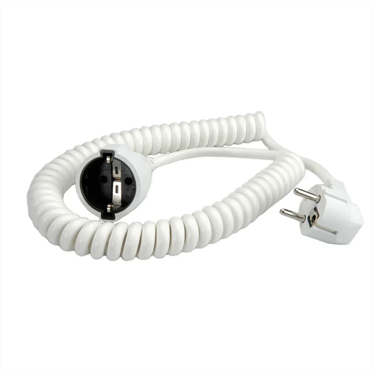 Spiralleitung - 16A/ 250V~ - 1.000 mm, 4.000 mm, 27 mm, 10 mm H05VV-F 3G 1,5 - mm² weiß CEE 7/7 Schutzkontaktstecker, zentral, - gespritzt CEE 7/3 Schutzkontaktsteckdose, - zentral, gespritzt - unverpackt