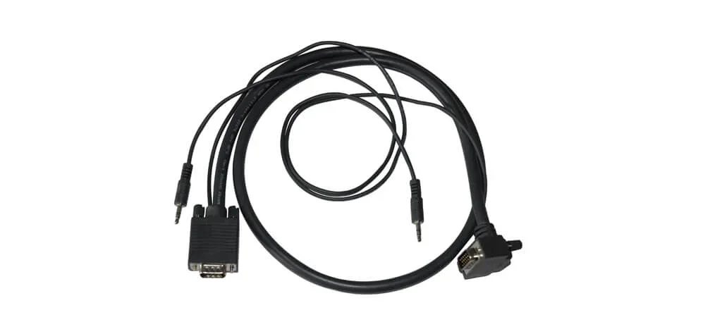 HD15 + 3,5 mm Stereo Kabel mit einem 90 Grad nach unten abgewinkelten HD15–Stecker