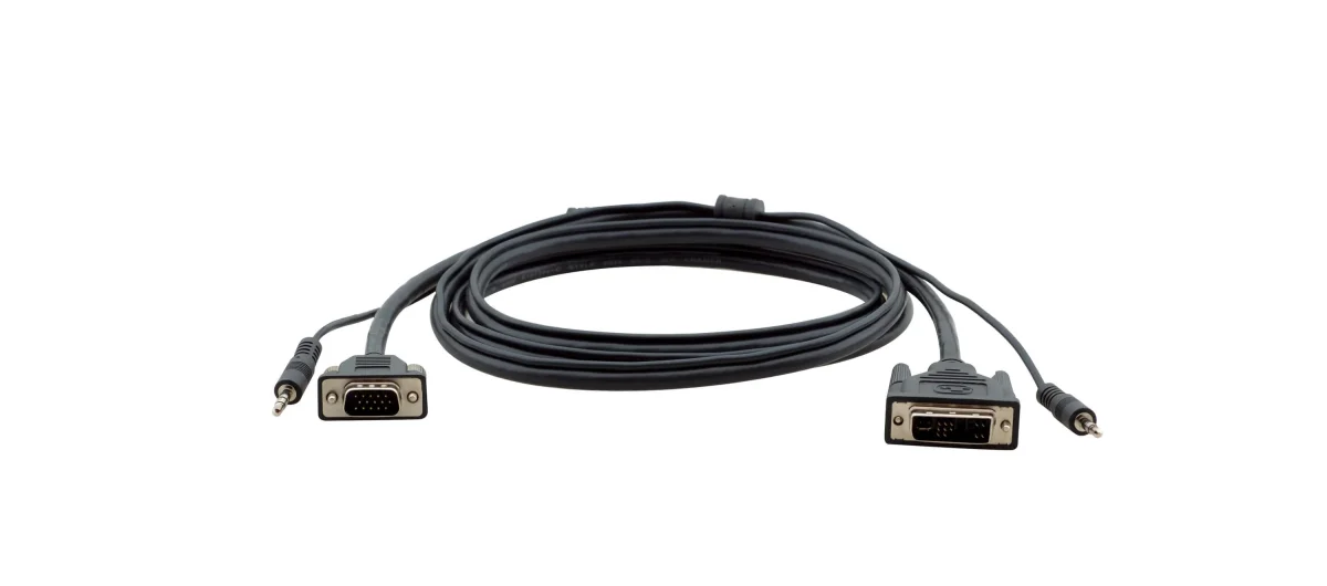 Kramers C−MDMA/MGMA ist ein Adapter−Kabel für die Verbindung eines Laptops mit einem Videokonferenz−System mit DVI−Eingang. Es adaptiert die Analog−Pins eines DVI−I Steckers in einen HD15−Stecker, außerdem wird der 3,5 mm Stecker in Cinch−Stecker adaptiert.