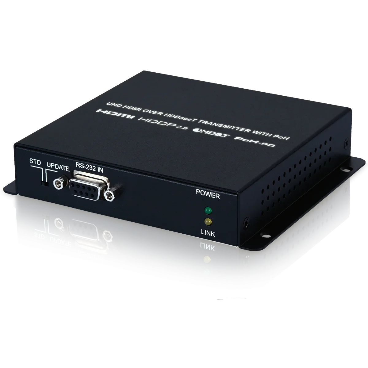 This transmitter and receiver set is a great solution for extending uncompressed HD audio and video as well as Ethernet and control via a single run of Cat.5e/6/7 cable over distances of up to 70 meters. Multiple data and control interfaces are provided, including IR and RS-232 connections. This extender set complies with the advanced HDCP 2.2 and HDMI 2.0 standards, as well as supporting the legacy HDCP 1.x and HDMI 1.x standards. The Transmitter (PD) is powered by 48V PoH (Power over HDBaseT) provided by the Receiver (PSE), allowing for greater flexibility within different installation scenarios.