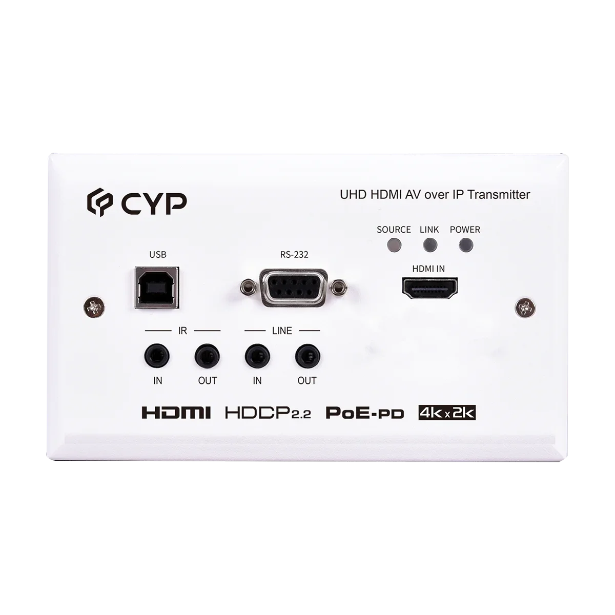 Video, audio and control transmission over TCP/IP in Unicast (point-to-point) or Multicast (single-to-many, many-to-many) modes, When connected, the analog Line In audio is automatically embedded into the transmitted signal for output on connected Receivers via HDMI and their analog Line Out ports, The Mic In on a connected Receiver will send audio directly to the analog Line Out on this Transmitter, May be powered directly by PoE when connected to a Gigabit Ethernet switch that provides PoE (802.3af), Supports USB keyboard, mouse and storage extension