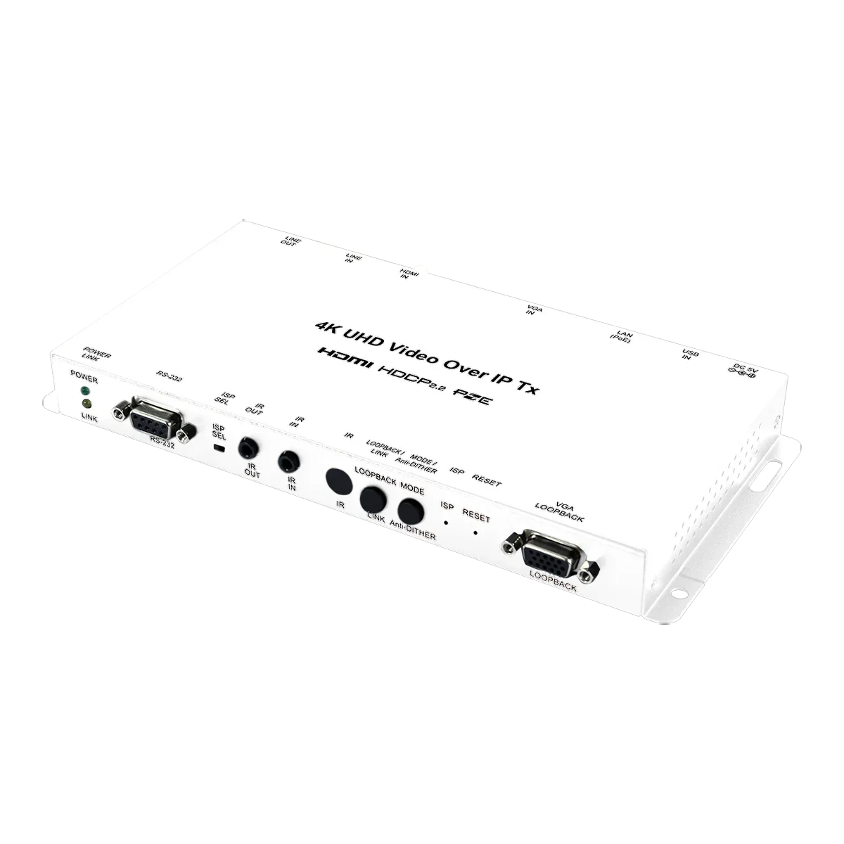 This unit is part of a 4K UHD Multi-Function Extension system that allows you to extend HDMI or VGA signals over regular Cat.5e/6/7 network cable. This extender supports the transmission of Ultra High-Defi nition signals (up to 4K@30Hz YUV 4:4:4 or 4K@60Hz YUV 4:2:0) with audio and USB up to 100m on a single cable. The transmission distance can be further extended (up to 100m per segment) by using gigabit network switches, allowing the user to cascade the system without signal loss or introducing delay. It is also possible to have the extension system's Transmitter operate in multicast mode, allowing you to send a single AV signal to a large number of Receivers within the same local network. It is useful for user to create large multi-display video walls with amazing simplicity