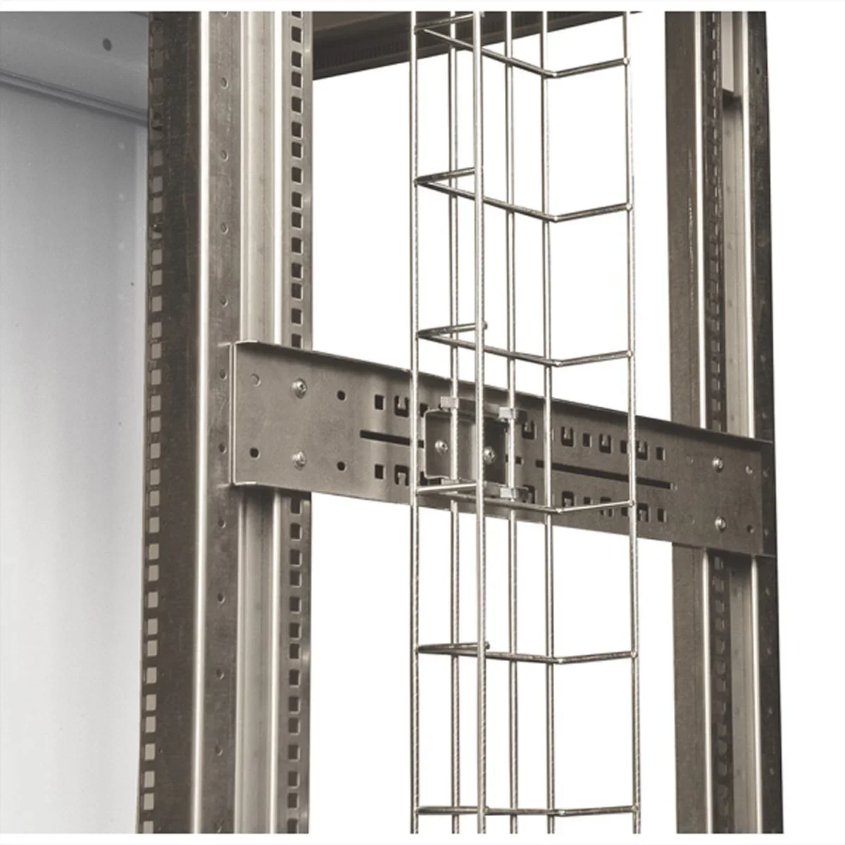 - Kabelmanagement zur vertikalen Kabelführung im seitlichen Schrankbereich zwischen 19" Profilschiene und Seitenwand.
