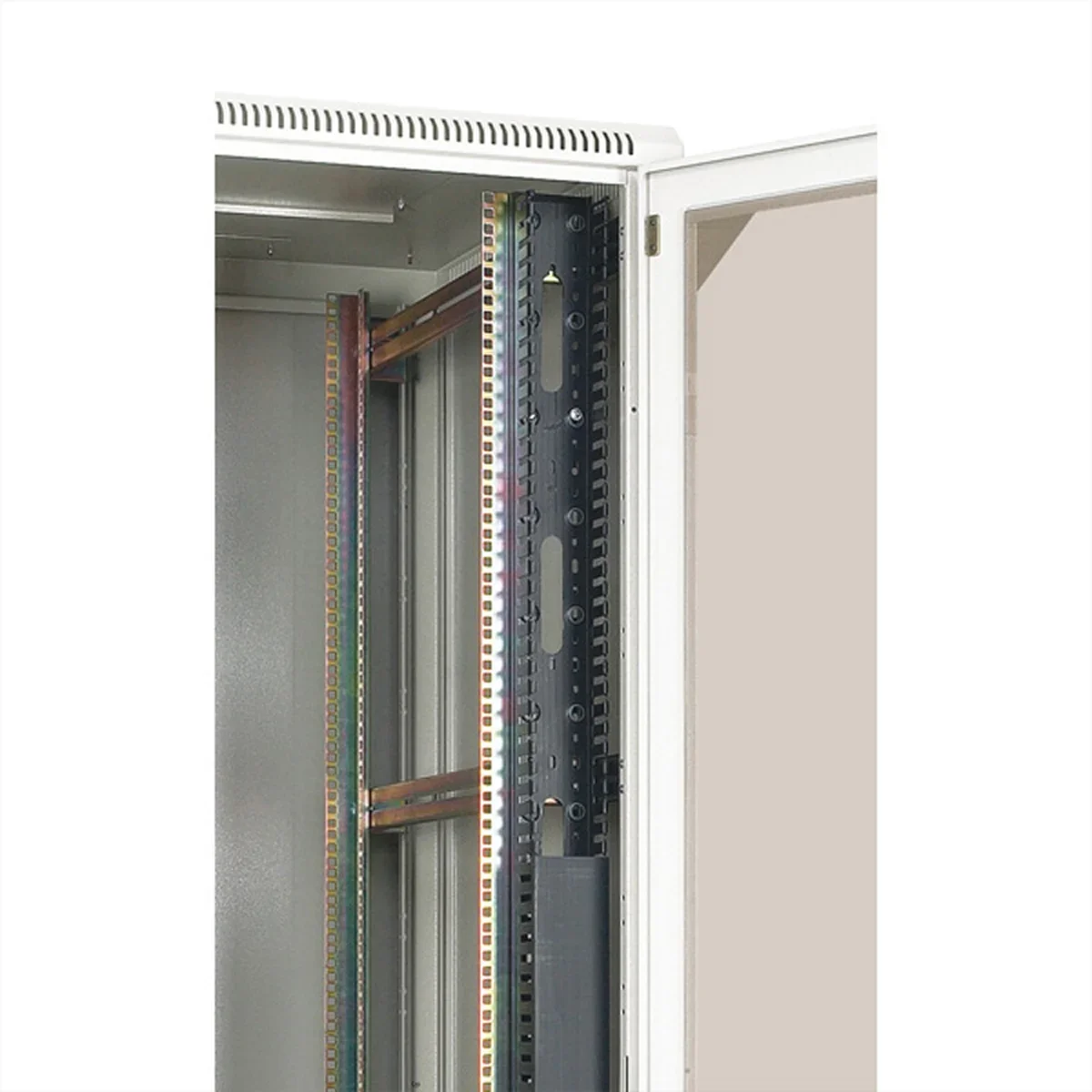 - Vertikal Kabelmanagement für die geordnete und verdeckte Kabelführung im Schrank