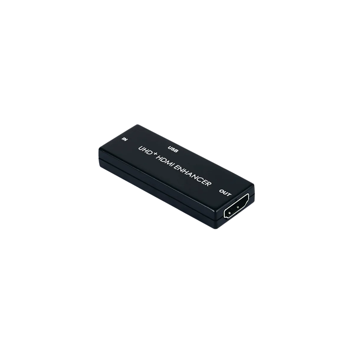 Retiming capability allows for clean regenerated signals for transmission., Supports USB 5V injector functions, Supports pass-through of many audio formats including LPCM 2.0/5.1/7.1, Bitstream, and HD Bitstream, Supports CEC/ARC bypass, Cascading HDMI signal up to 7 layers with 9m Premium Cable (63 meters), Compact design, Note:1. For devices that do not support power over cable and USB Power Injector can be used to the HDMI Enhancer.2. HDMI cable tested with 28AWG, different source and different cable may cause in different result on cable distance and cascading layers.