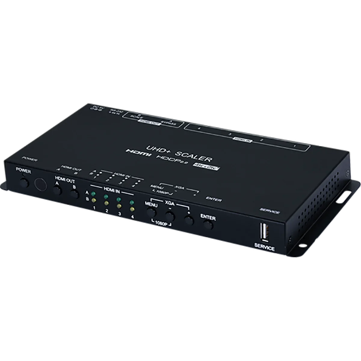 The HDMI inputs and outputs support passing uncompressed digital audio up to LPCM 7.1 as well as Bitstream and HD Bitstream audio formats. Shortcut keys are provided to quickly change the output resolution to 1080p@60Hz or XGA when needed for quick connection to a display or for troubleshooting purposes. This unit is controlled via comprehensive front panel controls (with OSD), RS-232, and IR remote providing the user with easy access to all settings.