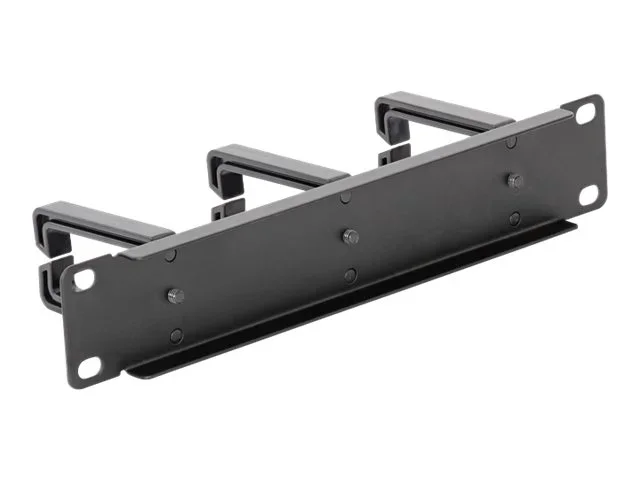 Dieses Rangierpanel von Delock kann in einen 10? Geräteschrank eingebaut werden. Mit den Kabelführungsbügeln können Patchkabel geordnet horizontal verlegt werden.