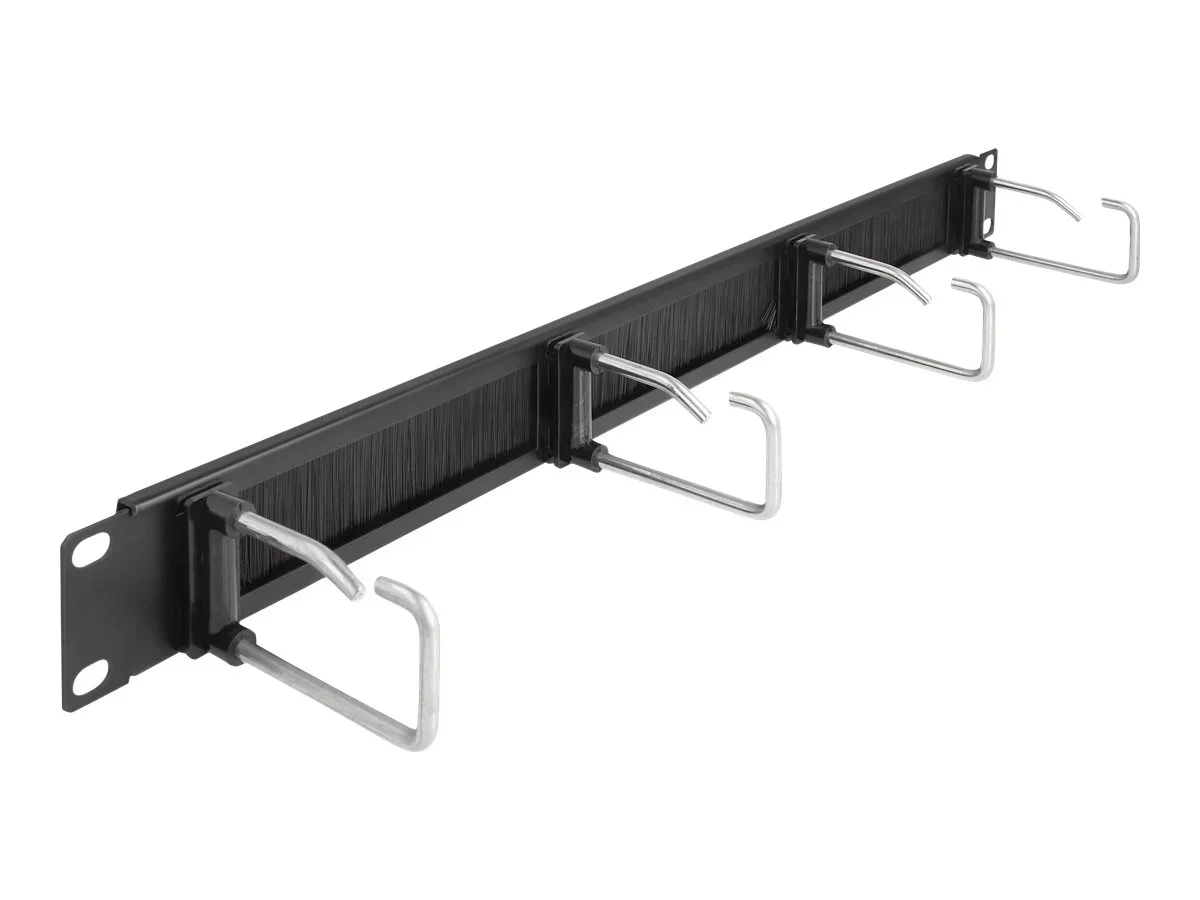 Delock - Kabelführungspanel mit Bürste - mit 4 Metallhaken - Schwarz - 1U - 48.3 cm (19")