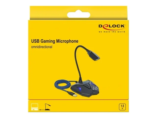 Delock Desktop USB Gaming Microphone with Gooseneck and Mute Button - Mikrofon - USB - Schwarz, Blau