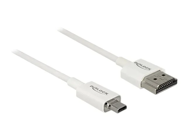 Das High Quality High Speed HDMI mit Ethernet Kabel von Delock ermöglicht die Verbindung zwischen einer Kamera oder einem Tablet mit Micro HDMI Schnittstelle und einem Monitor oder Fernseher mit HDMI-A Buchse. Es zeichnet sich besonders durch seinen geringen Durchmesser und die kurzen Stecker aus. Das dreifach geschirmte Kabel vereint schnelle Datenübertragung sowie Audio- / Video- und Ethernetverbindung in einem. Durch die Unterstützung einer maximale Bandbreite von 18 Gb/s können Inhalte in 4K Auflösung (maximale Bildrate 60 Hz), 3D Inhalte in 4K Auflösung (maximale Bildrate 30 Hz) sowie Inhalte im 21:9 Kino Bildformat wiedergegeben werden. Das Kabel ermöglicht die gleichzeitige Übertragung von zwei Videokanälen, um Video-Streams für zwei Benutzer auf einem Bildschirm darzustellen, sowie die gleichzeitige Übertragung von bis zu vier Audiokanälen. Die Qualität von Audioübertragungen wird durch die Abtastrate von bis zu 1536 kHz deutlich verbessert.