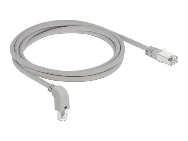 Delock - Patch-Kabel - RJ-45 (M) nach unten gewinkelt zu RJ-45 (M) gerade - 2 m - S/FTP - CAT 6a - geschirmt, halogenfrei - Grau