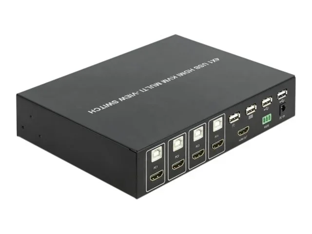 Dieser KVM Switch von Delock ist eine praktische Lösung, um vier Computer mit HDMI Ausgang an einem HDMI Monitor zu betreiben. Des Weiteren können über vier USB 2.0 Typ-A Anschlüsse Maus, Tastatur, Drucker oder USB Laufwerk angeschlossen werden.