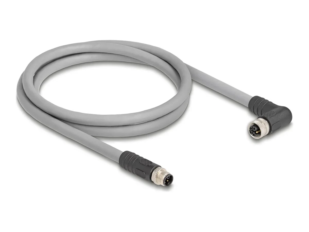 Delock - Sensorkabel - M12 (5-polig) (M) gerade zu M12 (5-polig) (W) rechtwinklig - 63 V - 16 A - 1 m - silikonfrei, L-codiert - Grau