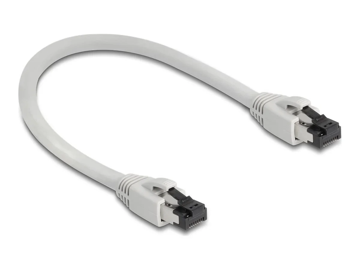 Delock - Patch-Kabel - RJ-45 (M) zu RJ-45 (M) - 25 cm - 7.5 mm - S/FTP, PiMF - CAT 8.1 - halogenfrei, ohne Haken, bis zu 40 Gbps Datentransferrate - Grau