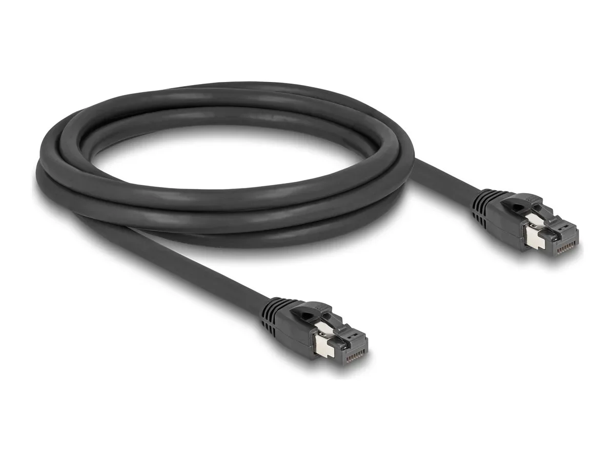 Delock - Netzwerkkabel - RJ-45 (M) zu RJ-45 (M) - 2 m - 7.5 mm - SFTP, PiMF - CAT 8.1 - halogenfrei, ohne Haken, bis zu 40 Gbps Datentransferrate - Schwarz