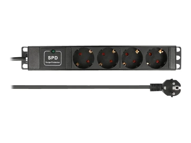 Delock - Steckdosenleiste (Wandmontage) - AC 220-250 V - 3500 Watt - Eingabe, Eingang power CEE 7/7 - Ausgangsanschlüsse: 4 (4 x CEE 7/3) - 1U - 1.5 m Schnur - Schwarz