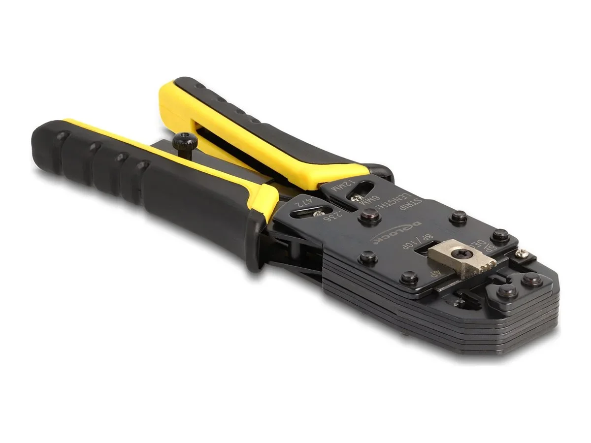 Entdecken Sie die Effizienz und Vielseitigkeit der Delock Crimpzange, ein unverzichtbares Zubehör für Netzwerkprofis und -enthusiasten. Dieses Werkzeug ist für eine breite Palette von Steckern ausgelegt, darunter RJ-11, RJ-12, RJ-45 und RJ-50, und ist damit eine universelle Lösung für verschiedene Netzwerkaufgaben. Es ist aus robustem Metall und Kunststoff gefertigt und garantiert Langlebigkeit und Zuverlässigkeit. Darüber hinaus ist es nicht nur eine Crimpzange, sondern verfügt auch über integrierte Abisolier- und Schneidefunktionen, die die Kabelvorbereitung vereinfachen. Ganz gleich, ob Sie ein Heimnetzwerk einrichten oder ein professionelles Rechenzentrum verwalten, dieses Werkzeug bietet die Funktionalität, die Sie für ein effizientes Kabelmanagement benötigen.