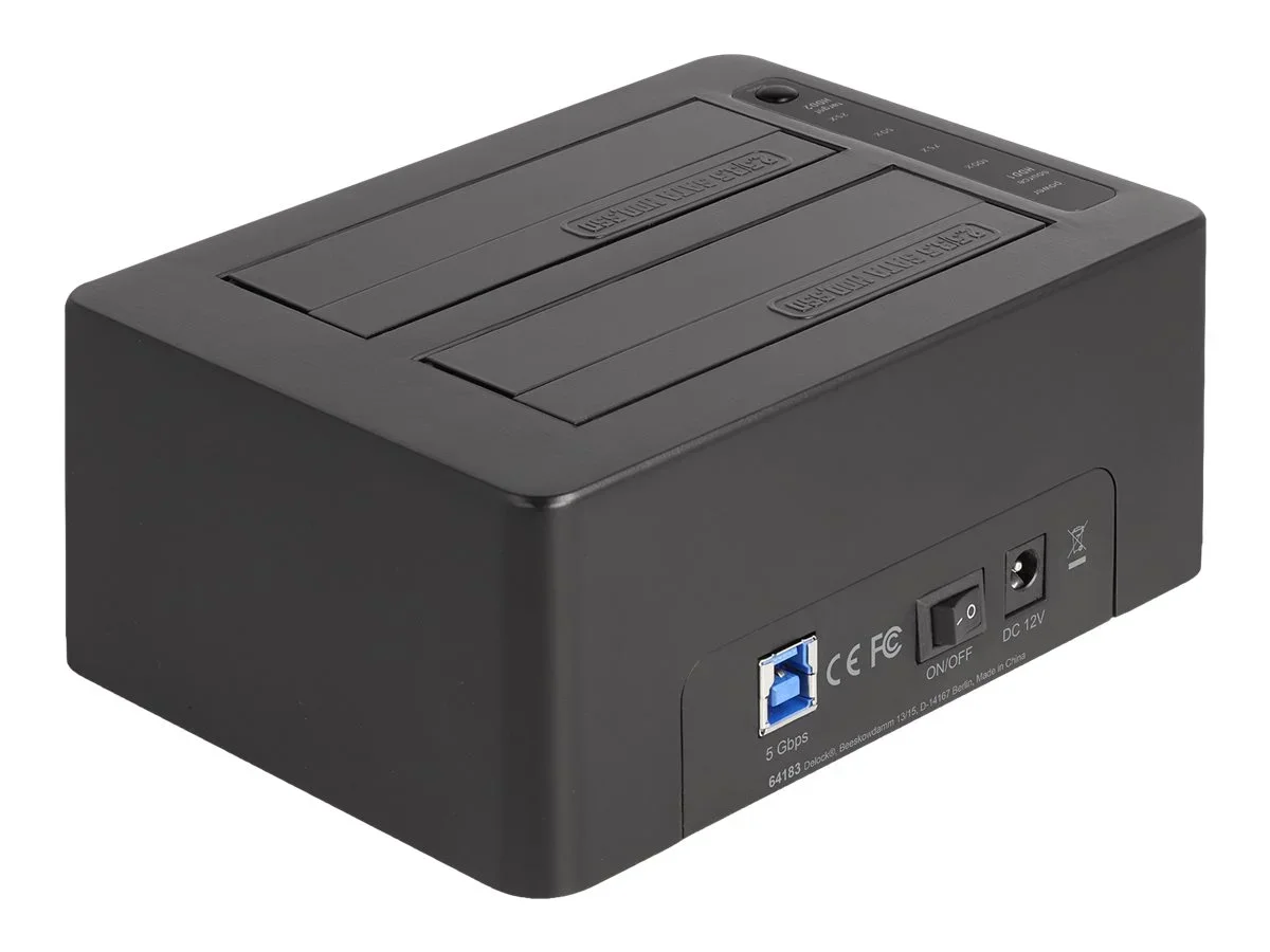 Delock - HDD / SSD Dockingstation Schächte: 2 - 2,5" / 3,5" gemeinsam genutzt (6,4 cm/8,9 cm gemeinsam genutzt) - SATA 6Gb/s - USB 3.2 (Gen 1) - Schwarz