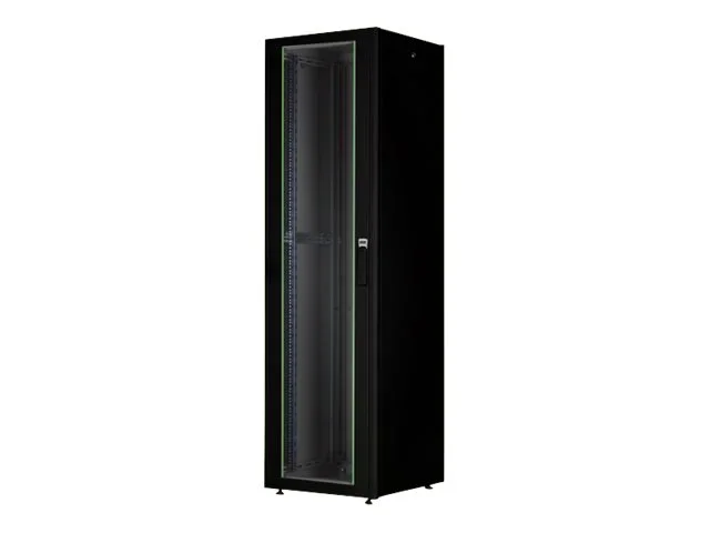 Der Netzwerkschrank aus der Dynamic Basic Serie wurde für Verkabelung und Netzwerkkomponenten entwickelt und produziert. Verschiedenste Optimierungen führen zu einer optimalen Leistung in Qualität und Mehrwert. Der Schrank ist benutzerfreundlich konzipiert und ästhetisch im Aussehen. Die Fronttür besteht aus seitlichen Metallstreben mit Sicherheitsglas. Alle Seitenteile sowie die Rückwand sind abschließbar und können leicht abgenommen werden. Jeder Schrank beinhaltet galvanisierte 483 mm (19")-Profilschienen, montiert vorne und hinten im Schrankinneren. Sie sind tiefenverstellbar und besitzen eine Markierung der jeweiligen Höheneinheit. Das Dach ist vorbereitet zur Aufnahme einer Lüftereinheit.