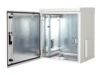 Die 483 mm (19") DIGITUS Outdoor-Wandgehäuse wurden für industrielle Applikationen hergestellt. Sie basieren auf der IP55 Schutzklasse und sind somit geschützt vor Wasser- und Staubeindringung. Die Lüftungseinheiten und Filtereinbauten basieren auf der Schutzklasse IP54. Beste Leistung bieten die Wandgehäuse unter anderem durch das 3-Punkt-Verriegelungssystem mit abschließbarem Schwenkhebelgriff und isolierten Kabeleingängen. Integrierte Lüftungsfiltergehäuse sorgen für Frischlufteinlass (Schutz vor Wasser- und Staubeindringung gem. IP54). Anwendungsgebiete sind Außenbereiche, die den Umwelteffekten ausgesetzt sind (Regen, Staub, Hagel, Schnee, Spritzwasser). Die Doppelwandstruktur im Inneren dient dem verbesserten Schutz gegen Temperaturschwankungen. Außerdem können somit leichter beispielsweise Kabelmanagementkomponenten installiert werden.