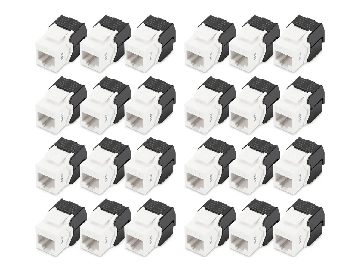 Die DIGITUS DN-93603-24 ist eine modulare Keystone-Buchse mit Einsatz, die für nahtlose Konnektivität in Netzwerkanwendungen entwickelt wurde. Dieses Produkt verfügt über UTP-Technologie (Unshielded Twisted Pair), die für CAT-6-Installationen geeignet ist. Das werkzeuglose Design vereinfacht den Installationsprozess und ermöglicht eine schnelle Terminierung mit 22- bis 26-AWG-Massivdrähten. Es verfügt über einen Phosphorbronze-Steckverbinder, um eine zuverlässige Leistung zu gewährleisten. Diese Keystone-Buchse unterstützt sowohl T568A- als auch T568B-Verdrahtungsschemata und ermöglicht so eine Vielzahl von Konfigurationen für ein effizientes Netzwerkmanagement.