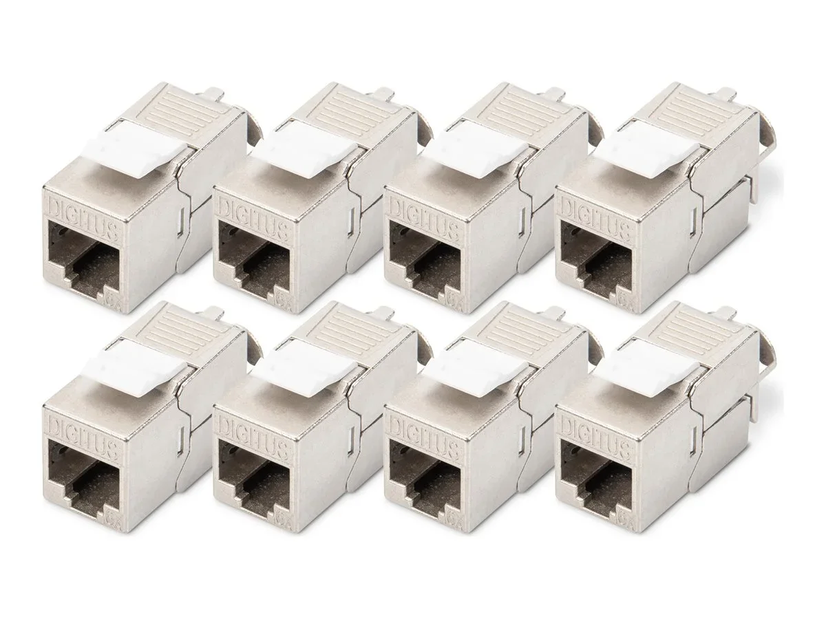 Der modulare Einsatz DIGITUS DN-93615-8 bietet effiziente Verbindungslösungen mit seiner abgeschirmten Technologie und der Einhaltung mehrerer Standards, darunter IEEE 802.3af, IEEE 802.3at und IEEE 802.3bt. Das keystoneartige Design in Kombination mit werkzeuglosen Funktionen ermöglicht eine schnelle Installation, ideal für professionelle und DIY-Setups. Dieser modulare Einsatz unterstützt Power over Ethernet (PoE) und PoE+-Funktionen und ermöglicht eine vereinfachte Vernetzung, indem er Geräte über die Ethernet-Verkabelung mit Strom versorgt, sodass keine separaten Netzteile erforderlich sind. Dieses Keystone-Modul besteht aus langlebigem, vernickeltem Zinkdruckguss und ist für den Einsatz unter verschiedenen Umgebungsbedingungen mit Betriebstemperaturen von -20 °C bis 70 °C ausgelegt. Seine Phosphorbronzekontakte sorgen für zuverlässige Verbindungen, während die Staubschutzabdeckung vor Verunreinigungen schützt. Dieser Einsatz unterstützt sowohl T568A- als auch T568B-Verdrahtungsschemata und ist mit Litzendraht der Größen 22 bis 26 AWG kompatibel, was ihn zu einer vielseitigen Wahl für jede Netzwerkinstallation macht.