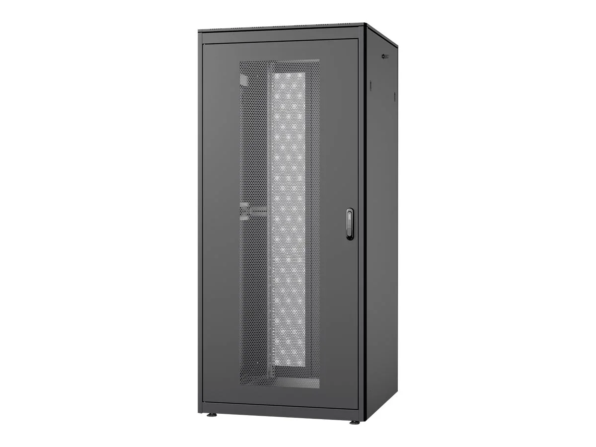 Die Netzwerk-Racks der Unique-Serie wurden für den benutzerfreundlichen Einbau von aktiven und passiven Netzwerkkomponenten bei gleichzeitig sauberem Kabelmanagement konzipiert. Jedes Rack besteht aus bis zu 1,5 mm starkem Stahlblech, das als robuste Stahlkonstruktion durch eine spezielle Blechbiegetechnik eine sehr gute Stabilität gewährleistet. Für bestimmte Bedingungen, bei denen der Aufstellort schwer erreichbar ist, kann das Rack zerlegt werden. Die Türen lassen sich leicht abnehmen und der Türanschlag kann von rechts nach links gewechselt werden. Das Dach ist mit einem zusätzlichen Deckel versehen, der Lüftungsschlitze für eine bessere Luftzirkulation enthält. Außerdem ist das Dach für die Montage eines Lüftungsgerätes vorbereitet. Jedes Netzwerkregal enthält 2 Paar (4 Stück) 483 mm (19") Profilschienen im Inneren, die verzinkt und mit Höheneinheitskennzeichnung (aus beiden Richtungen zählbar) sind. Sie sind in der Tiefe variabel und mit zusätzlichen Tiefenstreben verbunden, um umfangreiche 483 mm (19") Geräteeinbauten zu realisieren. Ein wichtiger Aspekt bei jeder Installation ist das Kabelmanagement. Der Boden jedes Racks ist mit einer verschiebbaren Kabeleinführungsplatte mit Gummidichtung ausgestattet. Racks ab 26 HE verfügen über zwei Kabeleinführungen mit Bürstenleisten auf der Rückseite ober- und unterhalb der Tür.