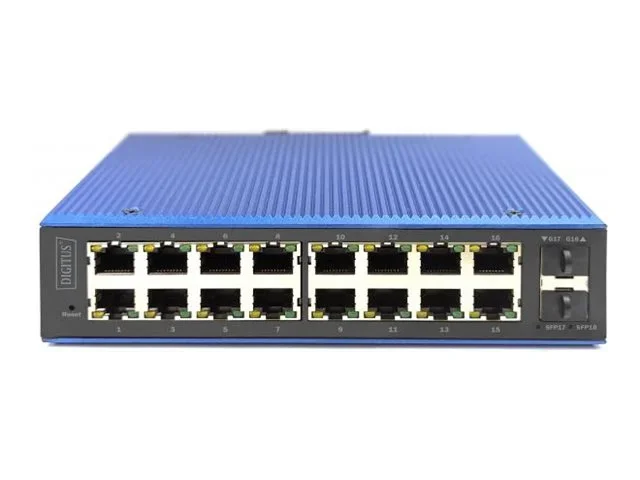 Der DIGITUS DN-651158 ist ein robuster industrieller L2-Switch, der für die Konnektivität in anspruchsvollen Umgebungen entwickelt wurde. Dieser Switch verfügt über eine Switching-Kapazität von 56 Gbit/s und unterstützt Paketweiterleitungsraten von 42 Mbit/s, wodurch eine effiziente Datenübertragung gewährleistet ist. Mit 18 Ports, darunter 16 10/100/1000 Mbit/s-Ports und 2 Gigabit-SFP-Uplink-Ports, bietet er vielseitige Anschlussmöglichkeiten für verschiedene Netzwerkanforderungen.