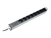 DIGITUS 1HE Aluminium Steckdosenleiste, einbaufähig, 10A Stecker, 250VAC 50/60Hz, 8x Abgriffe, IEC C14 Stecker.