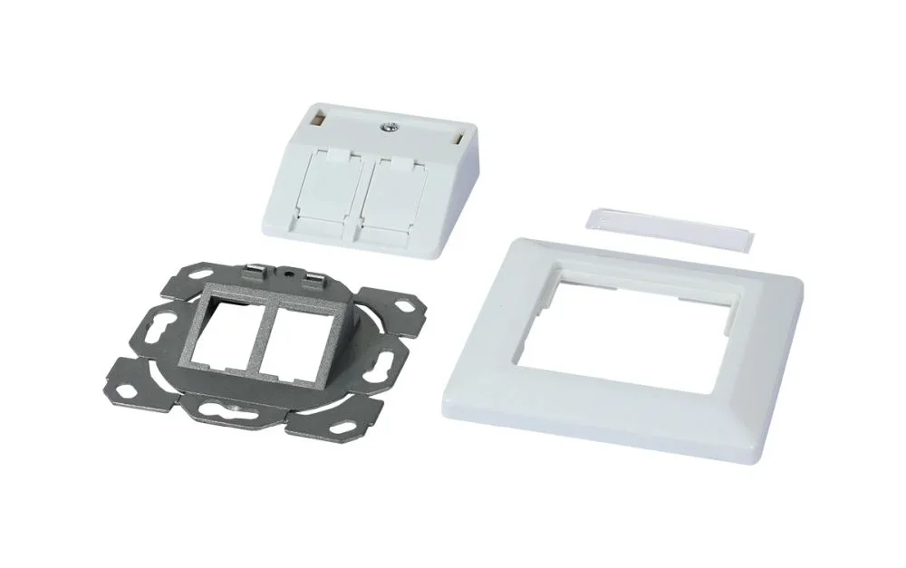 Dosen TP, UP,2-fach(27Grad Auslass für Runde Unterputzdosen), CAT6A, Keystone Slim-line/Komponent getestet, Reinweiss, Synergy 21,