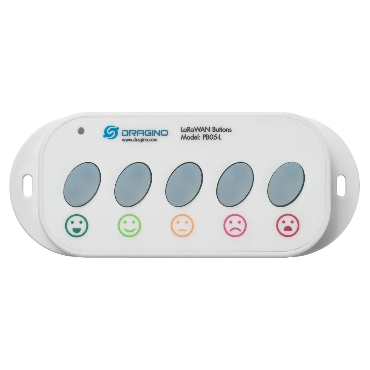 Der Dragino PB05-L ist ein batteriebetriebener LoRaWAN Push-Button mit fünf individuell belegbaren Tasten. Jeder Tastendruck wird über LoRaWAN (Class A, v1.0.3) gesendet. Das Gerät verfügt über einen eingebauten Lautsprecher mit akustischem Feedback, der bei Bedarf deaktiviert werden kann. Es unterstützt AT-Befehle zur Konfiguration, Remote-Parameter-Änderung via Downlink und Firmware-Updates über das Programmierport. Das robuste Gehäuse (IP52) ist wandmontierbar, ideal für Smart Building, Logistik oder Smart Factory Anwendungen.