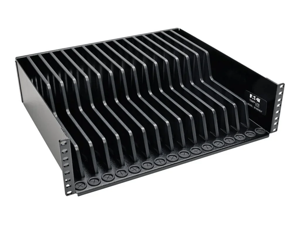 Das Eaton Tripp Lite Series 3U Rack Mount Tablet/iPad/Laptop Chromebook Storage Shelf bietet eine Lösung für die sichere und zugängliche Aufbewahrung mehrerer Geräte. Diese Montagekomponente bietet Platz für bis zu 16 Tablets oder Notebooks und sorgt dafür, dass wertvolle Elektronik ordentlich und leicht erreichbar aufbewahrt wird. Das Regal ist für die Rack-Montage ausgelegt und eignet sich daher für verschiedene AV-Umgebungen, wie z. B. Büros, Schulen und professionelle Umgebungen, in denen die effiziente Verwaltung von Geräten entscheidend ist.